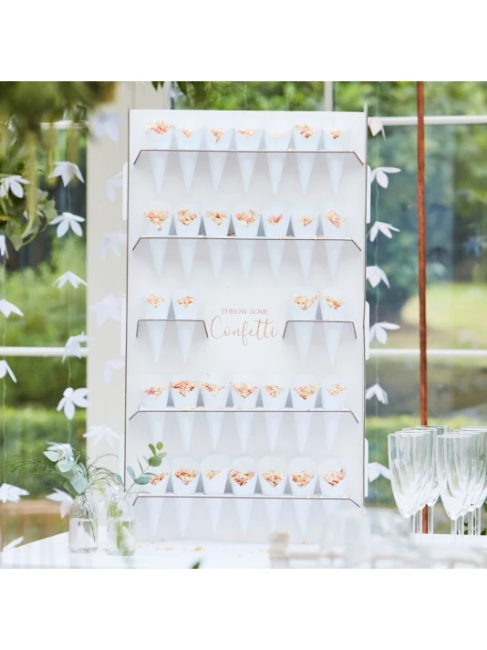 Contenu: 1 mur de confettis et 32 sachets de cornets (les confettis ne sont pas inclus)