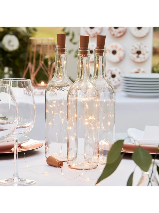 Contenu: 3 lampes en liège avec torons de 15 lampes LED. Pas de piles incluses, les lumières ont besoin de 3 piles LR44.