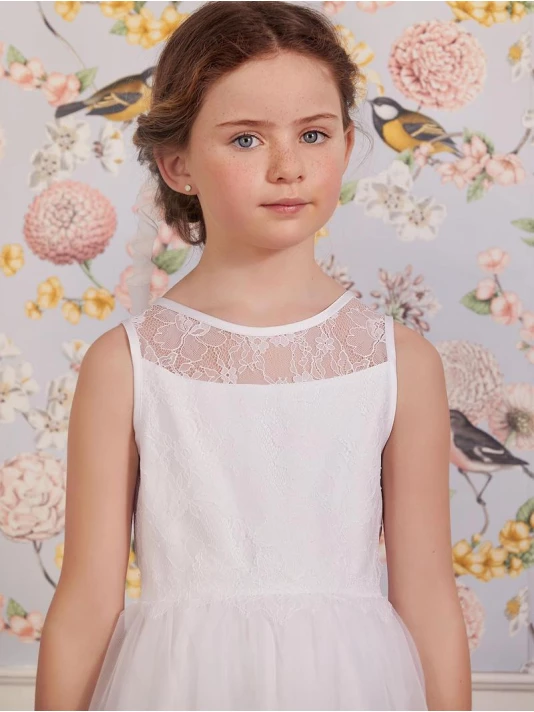Matériel: Top en dentelle, jupe en satin et tulle avec bordure en dentelle