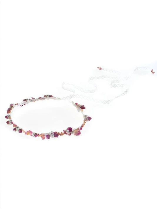 Matière: Vraies roses sur ruban de dentelle