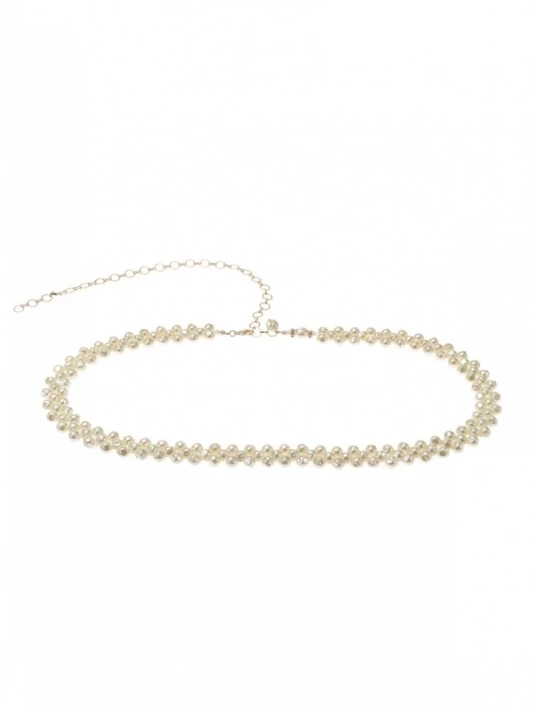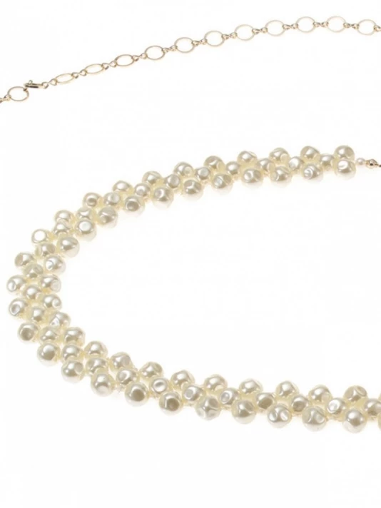 DĂ©tails: perles d’eau douce en ivoire sur une chaĂ®ne dorĂ©e