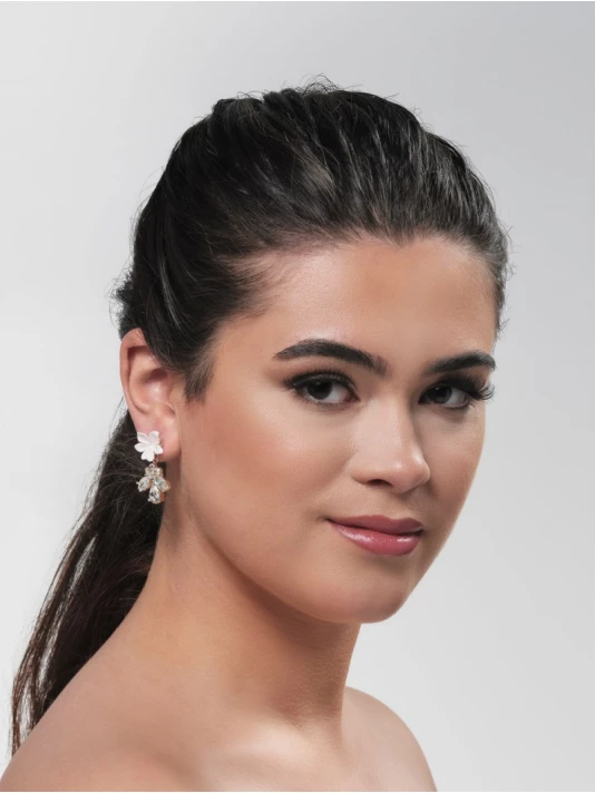 Détails: boucles d’oreilles de fleurs et de strass en porcelaine