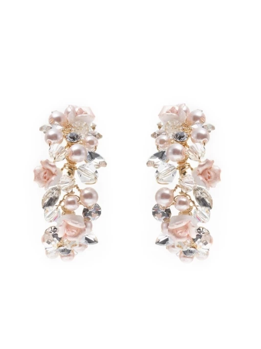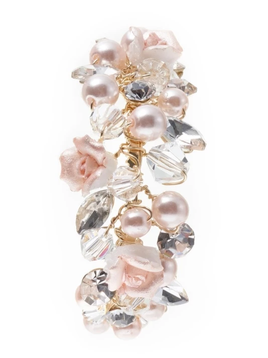 Détails: Argent coloré avec des perles ivoires, des cristaux, des roses en porcelaine ivoire avec des strass