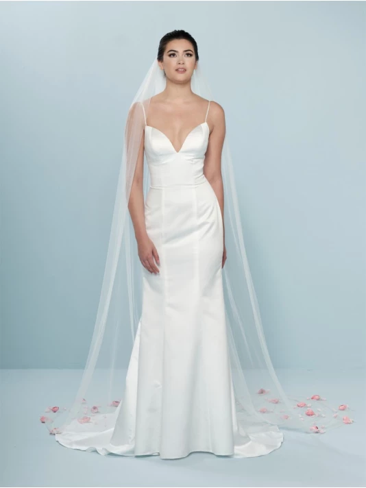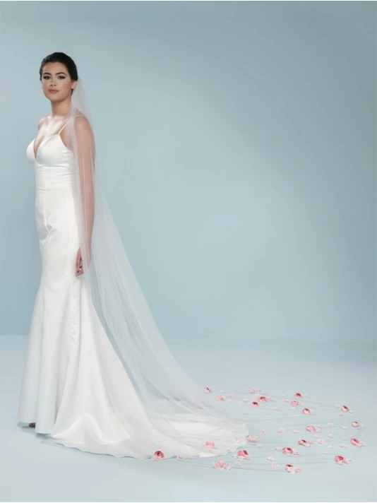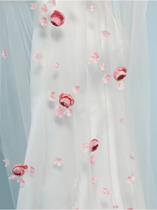 DĂ©tails du voile: avec des roses roses et d’autres petites fleurs