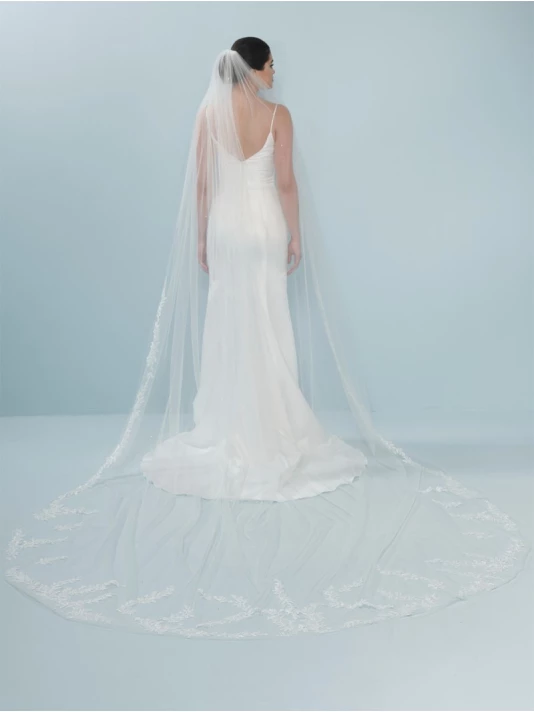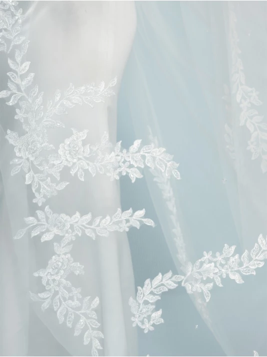 Bord du voile: appliques de dentelle, cristaux et paillettes