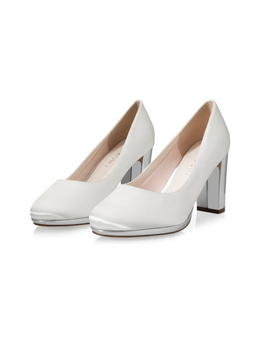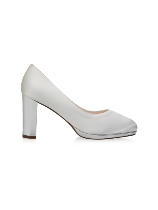 Fourrer: Satin, Talon haut brillant (miroir) en satin, de couleur argentée